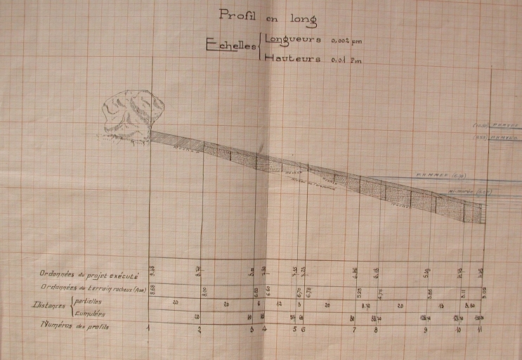 Plan : profil en long de la cale de haute mer réalisée en 1932 (AD 22)Immatriculation