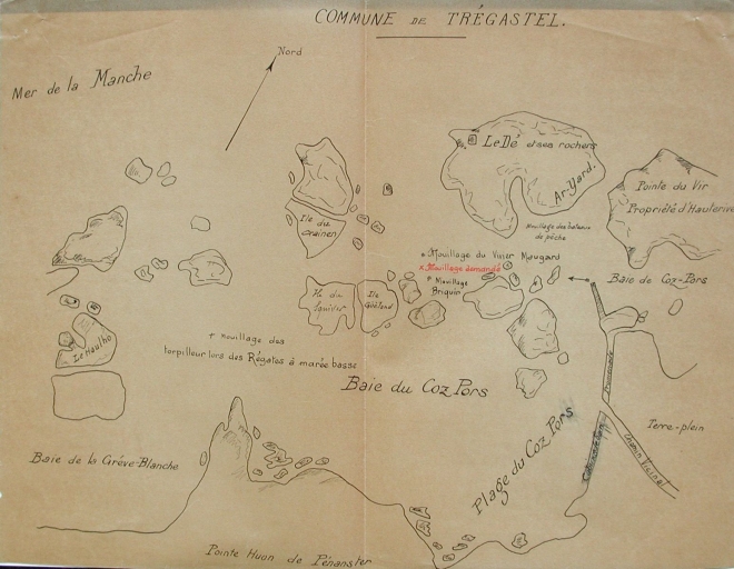 Plan de la baie de Coz Pors en 1911 : toponymie des îlots (AD 22)Immatriculation