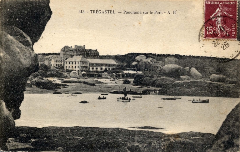 Les marins pêcheurs débarquent les touristes à Coz Pors devant l'Hôtel de la Mer nouvellement agrandi (collection particulière)Immatriculation