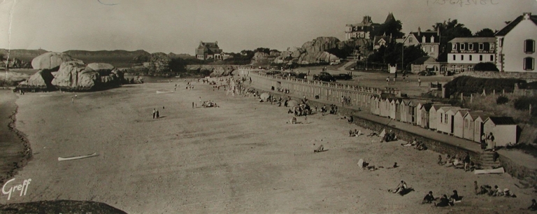 Le front de mer aménagé avec les cabines de plage en du au cours du 3ème quart du 20ème siècle, vers 1960 (collection particulière)Immatriculation