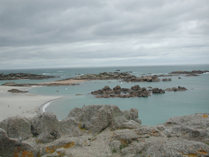 Vue des îles depuis le Rocher du Roi Gradlon : l'Île Seigle à l'ouest et l'Île Aux Lapins à l'estImmatriculation