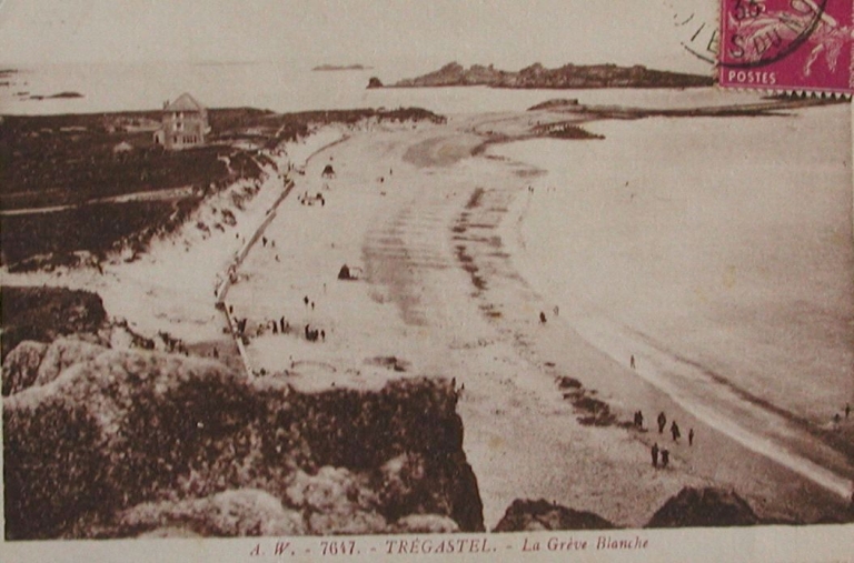 La digue est construite mais aucune construction hors l'hôtel de la Grève Blanche ; le tombolo est encore très largeImmatriculation