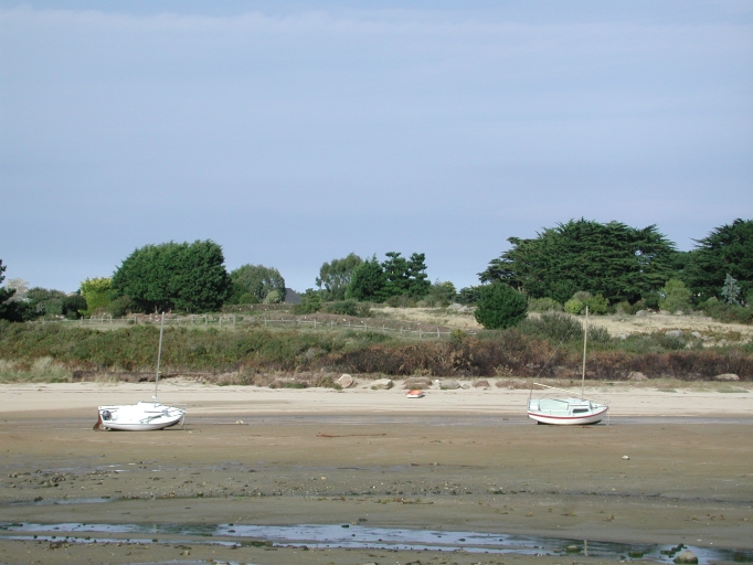 Le site du Cosquer au-dessus de la dune et l'échouage des bateaux (versant est de la baie)Immatriculation