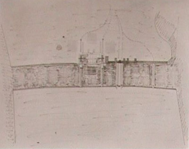 Schéma de fonctionnement de la digue du moulin avec les vannes (collection particulière)Immatriculation