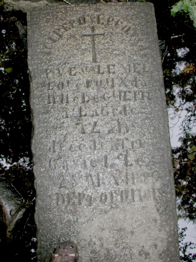 Vue de détail des inscriptions gravées sur la pierre tombaleImmatriculation