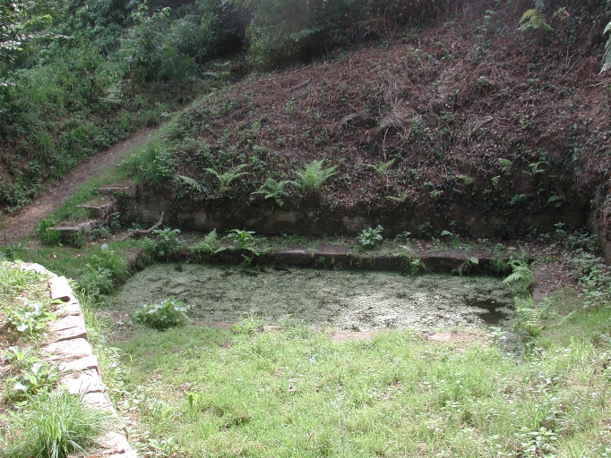 Vue en contre-plongée du lavoir restauré et du muret extérieurImmatriculation