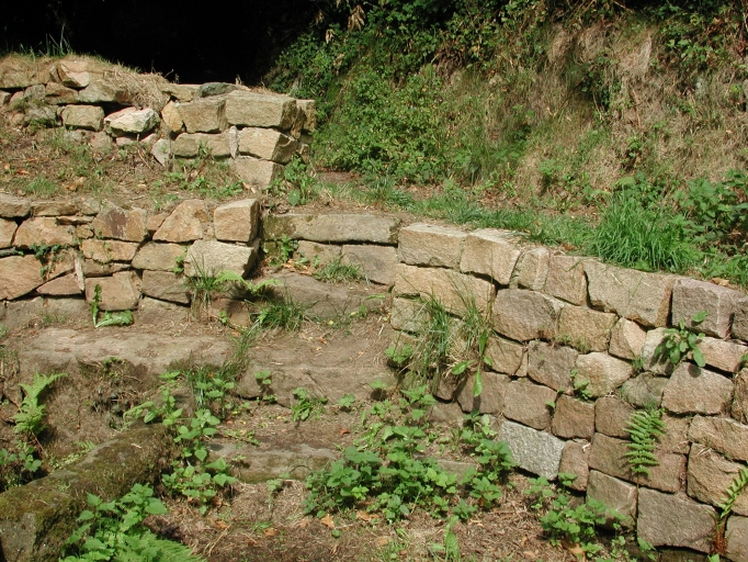 Vue de détail du muret construit en pierres sèchesImmatriculation