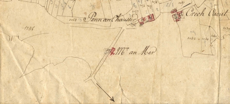 Extrait du cadastre de 1819 : le moulin à mer du Grand Traouïero, section A 1219 et le site de Crec'h Cavet (AD 22)Immatriculation