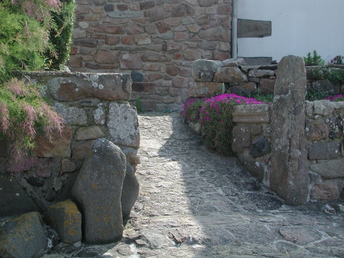 Vue de l'entrée de la propriété : remarquer les murets et le sol dalléImmatriculation