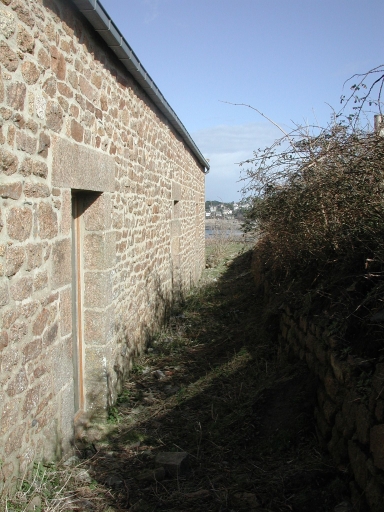 Bâtiment G, façade ouest devant un muret empierréImmatriculation