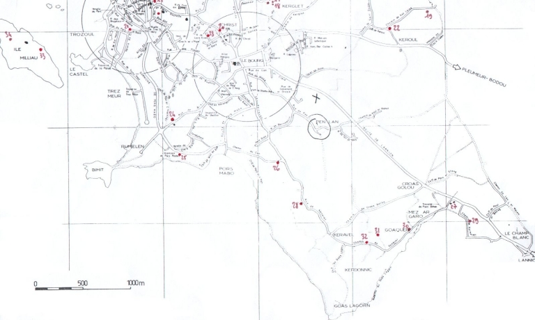 Carte n° 2 des fontaines repérées sur la commune de Trébeurden (office du tourisme)Immatriculation