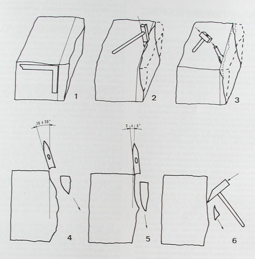 Dans : "L'outillage traditionnel du tailleur de pierre de l'Antiquité à nos jours"/Jean-Claude Bessac, Paris : Editions du CNRS, 1993, p. 27.Dessin.