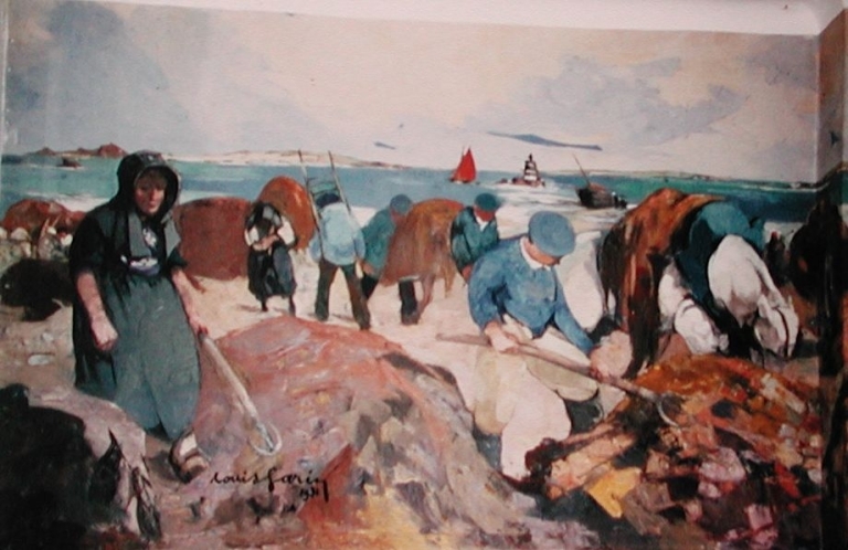 Fresque de Louis Garin dans l'hôtel Bellevue : scène goémonière sur la côte de Trébeurden, devant l'île Molène (collection particulière)Immatriculation
