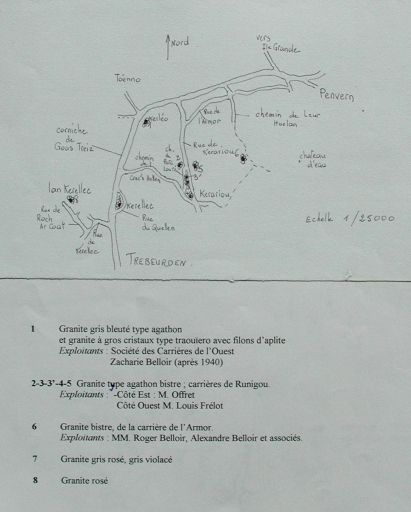 Carte des carrières de Trébeurden, présentant les différents granites (UTL Lannion)Immatriculation