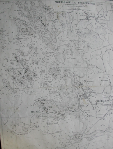 Plan du mouillage de Trébeurden en 1951 par J. Ory : l'île Milliau et l'île Molène (AD 22, EPSHOM)Immatriculation