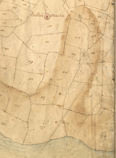 Extrait du cadastre de 1819 : le moulin du Hellen, section B 1012 (AD 22)Immatriculation