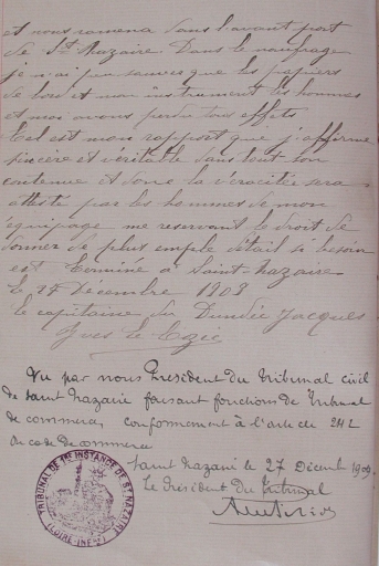 Rapport de mer de Yves Le Cozic : 4ème feuille (collection particulière)Immatriculation
