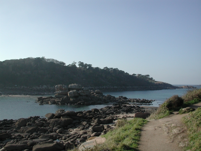 Le sentier qui fait le tour de la Pointe du Château : vue nord vers l'Île Milliau à marée basseImmatriculation