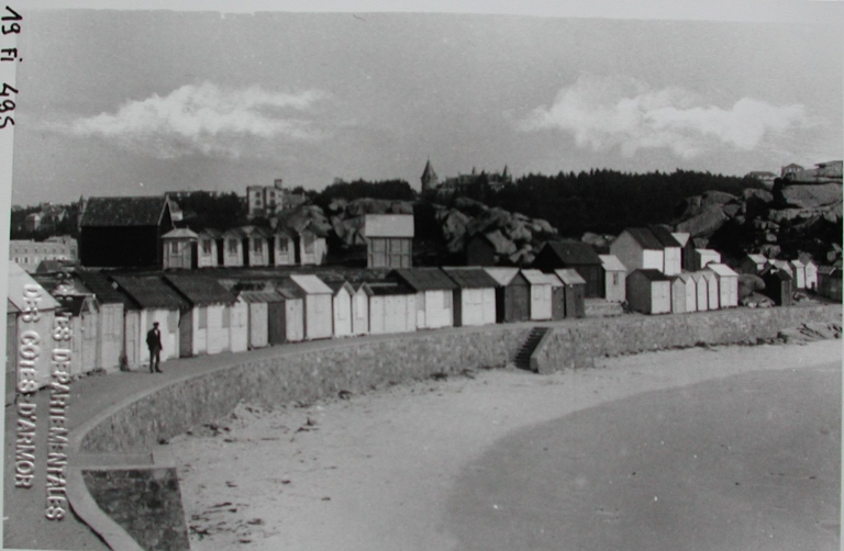 Cabines de bains et mur de défense littorale devant Tresmeur (AD 22, Lacombe)Immatriculation