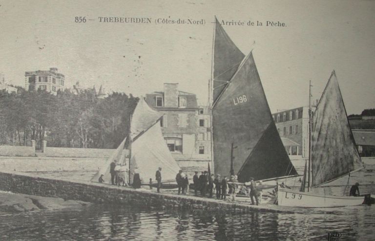 Pêcheurs homardiers devant l'hôtel Martret, en 1921 (AD 22)Immatriculation