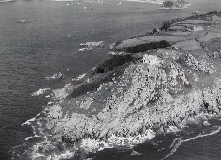 Vue aérienne de l'Île Milliau vers 1950 : remarquer l'ancienne villa Uro-Jourdan (fonds Henrard)Immatriculation