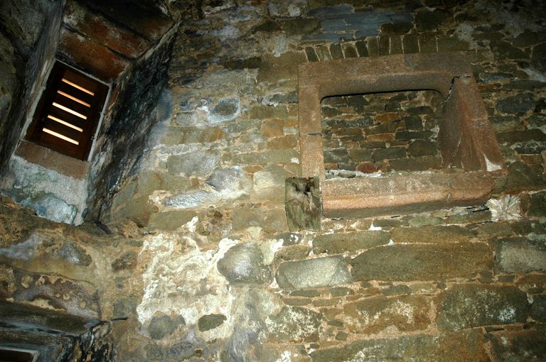 Vue de l'intérieur de la redoute, réduit de l'île aux Moines : cheminée et baie du premier étageImmatriculation