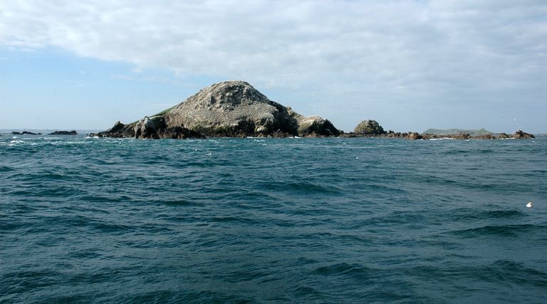 Vue de l'île Rouzic et de sa colonie de fous de Bassan (près de 15 000 couples de fous de Bassan de janvier à septembre)Immatriculation