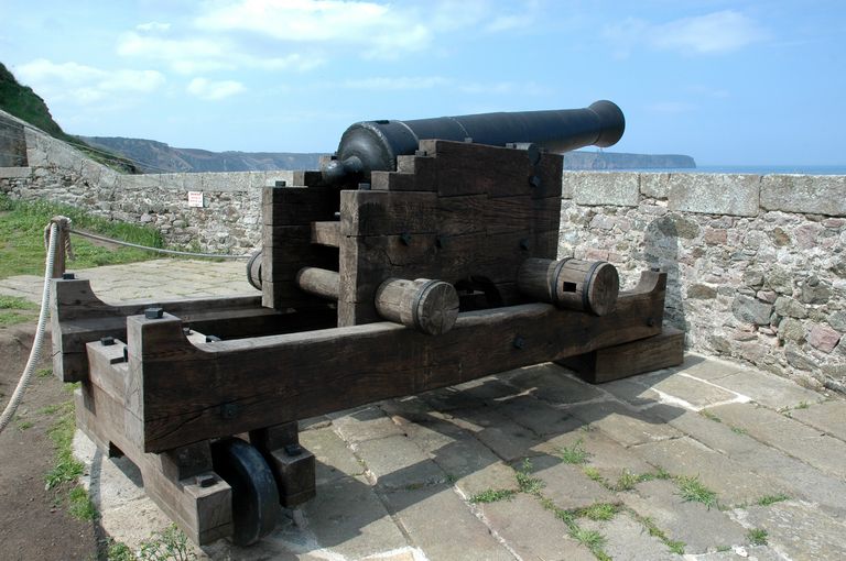 Vue du Fort La Latte : reconstitution d'un canon sur affût à châssis pivotant type GribeauvalImmatriculation