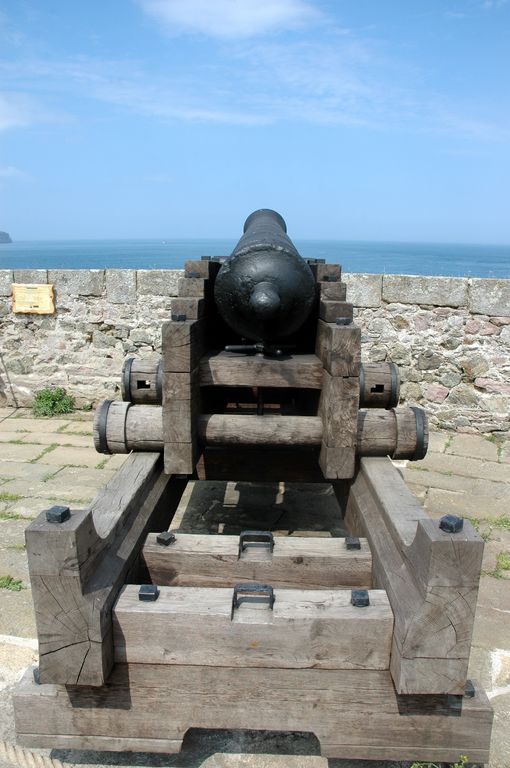Vue du Fort La Latte : reconstitution d'un canon sur affût à châssis pivotant type GribeauvalImmatriculation