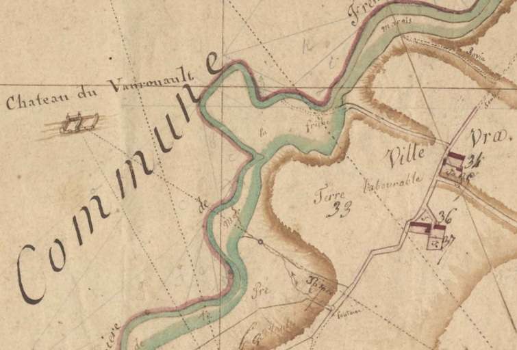 Extrait du cadastre de 1806 : le site du Pont Vaurouault et de la fontaine (AD 22)Immatriculation