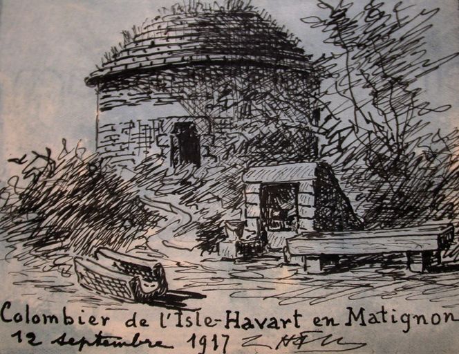 Vue générale du colombier, croquis du vicomte Henri Frotier de La Messelière, 12 septembre 1917 (AD 22)Immatriculation