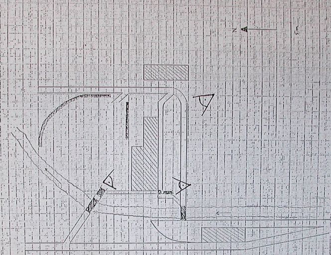 Plan de situation des ruines du moulin en 2001 (Service des Espaces Naturels du Département)Immatriculation