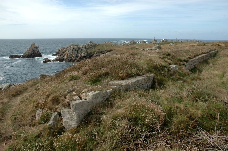 Vue de la batterie rectangulaire de Loqueltas, joue intérieure du parapet en graniteImmatriculation