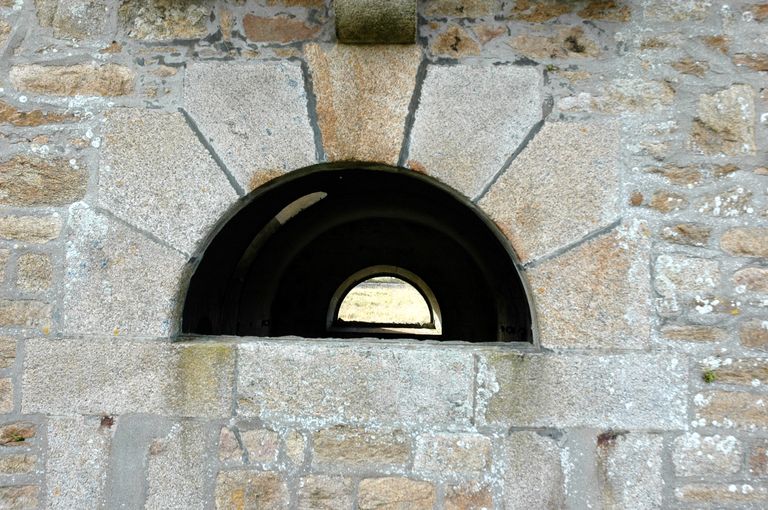 Vue du réduit de batterie de côte de Loqueltas, façade orientale. Détail d'une baie autrefois barrotéeImmatriculation