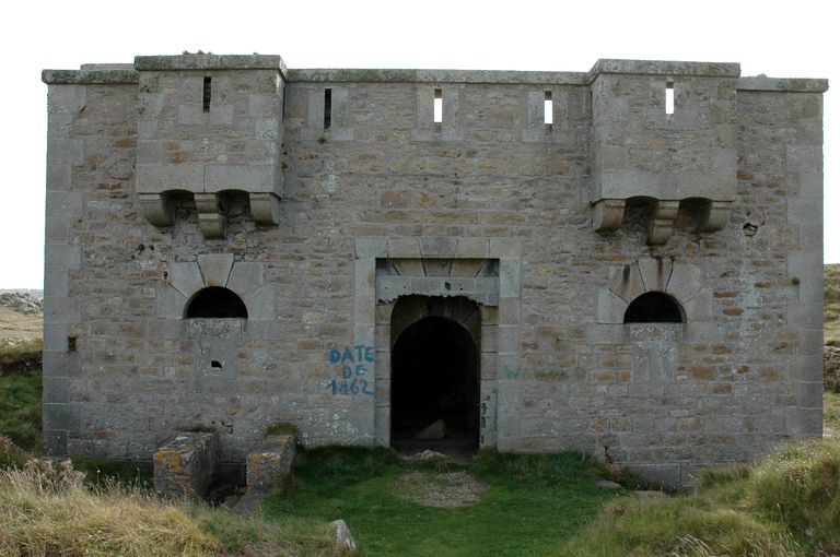 Corps de garde crénelé n° 3, année "1862" et batterie de Locqueltas (Ouessant),