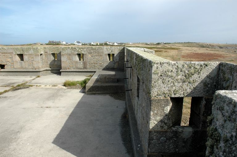 Vue du réduit de batterie de côte de Loqueltas. La terrasse est dotée de huit bretèches et créneaux de fusilladeImmatriculation