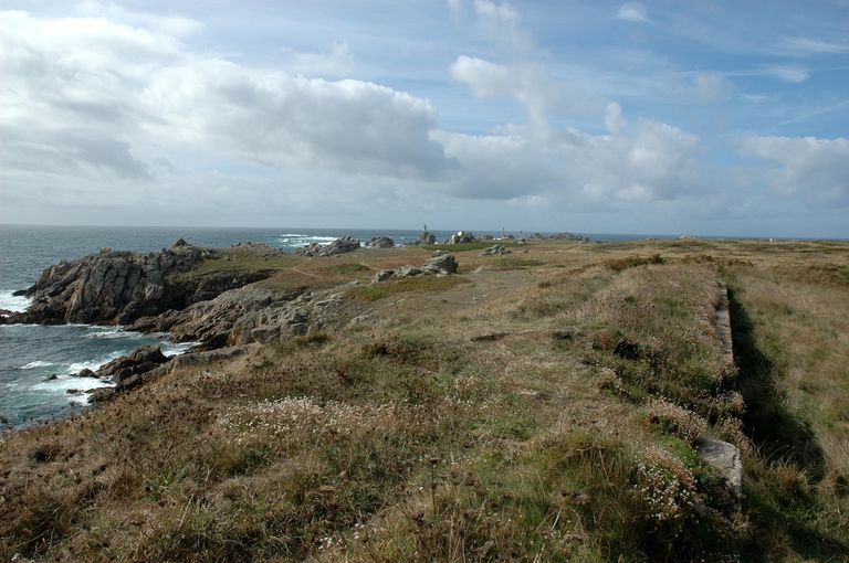 Vue de la batterie de côte de Loqueltas. En arrière-plan : la pointe de Pern et le phare de NividicImmatriculation