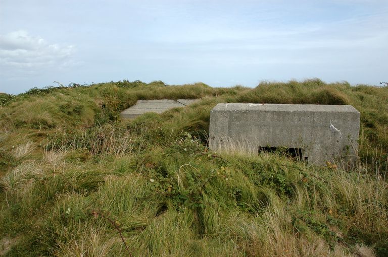 Vue de l'ensemble fortifié du Stiff : position au sud du sémaphore, blockhaus abri à personnels et abri bétonnéImmatriculation