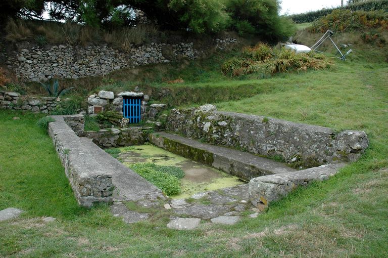 Vue de la plage du Prat, lavoir et fontaine Saint-Guénolé (signalétique mis en place par l'association Pouil ha Feunteun)Immatriculation