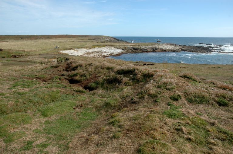Vue de l'ensemble fortifié de Penn ar Viler, parapet en terre de l'ancienne batterie de côteImmatriculation