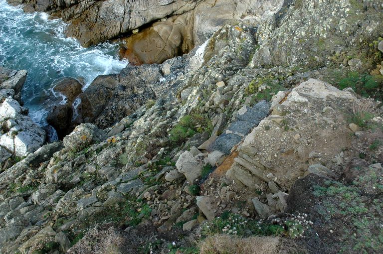 Vue de l'ensemble fortifié de Penn ar Viler, casemate aménagée dans le rocher pour canon de campagne tirant vers le nordImmatriculation