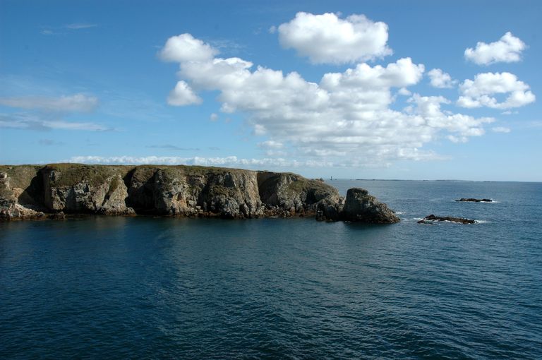 Batterie de côte (en équerre), corps de garde et magasin à poudre (détruits) de Porsguen (Ouessant),