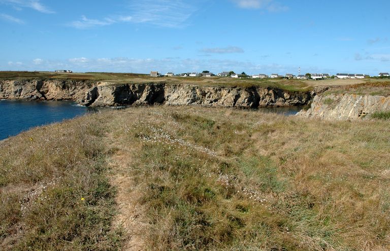 Batterie de côte (en équerre), corps de garde et magasin à poudre (détruits) de Porsguen (Ouessant),