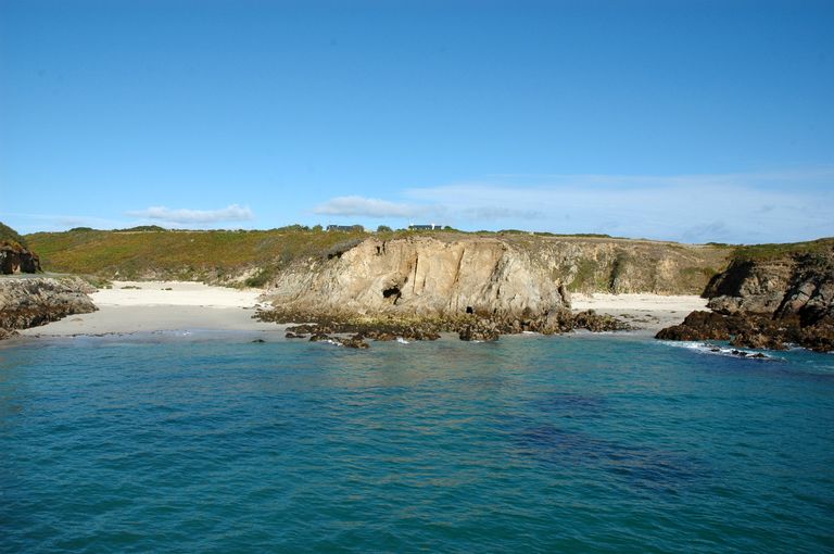 Batterie de côte (en arc de cercle), corps de garde, magasin à poudre (détruits) puis ensemble fortifié allemand de Porz ar Lan (Ouessant),