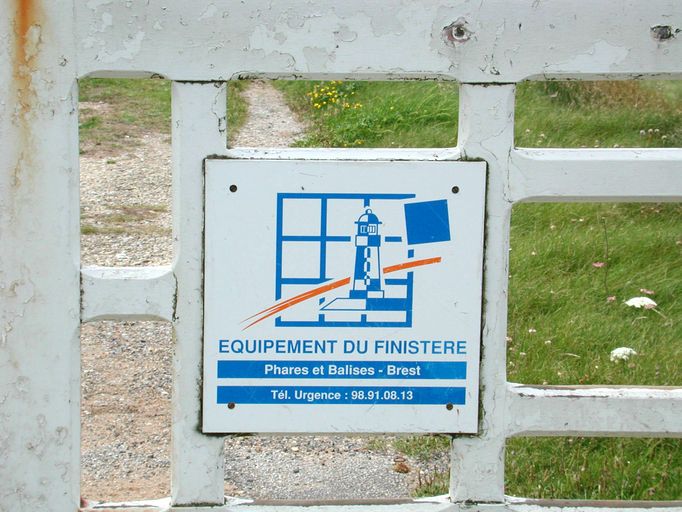Vue du réduit de batterie de côte de la pointe de Kermorvan, signalétique en placeImmatriculation