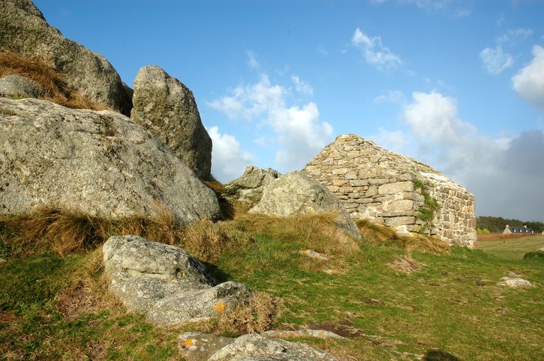 Vue du corps de garde : il est masqué de la mer par un chaos de graniteImmatriculation