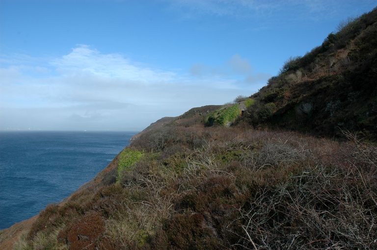 Groupe de 2 projecteurs de 60 cm et 90 cm et usine électrique, au ras de l'eau, Pointe Robert (Roscanvel),