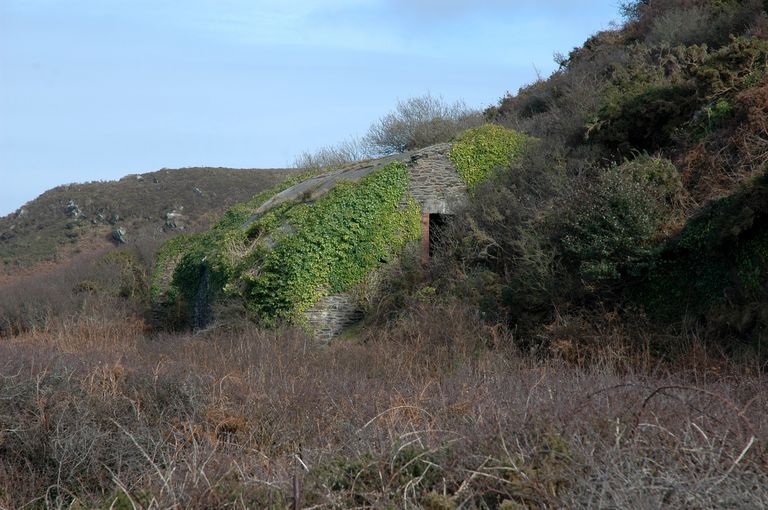 Groupe de 2 projecteurs de 60 cm et 90 cm et usine électrique, au ras de l'eau, Pointe Robert (Roscanvel),