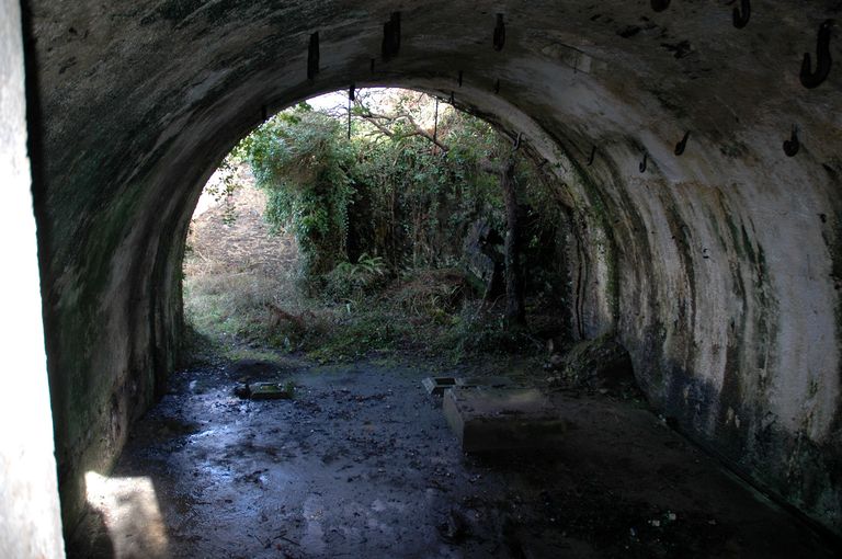 Groupe de 2 projecteurs de 60 cm et 90 cm et usine électrique, au ras de l'eau, Pointe Robert (Roscanvel),
