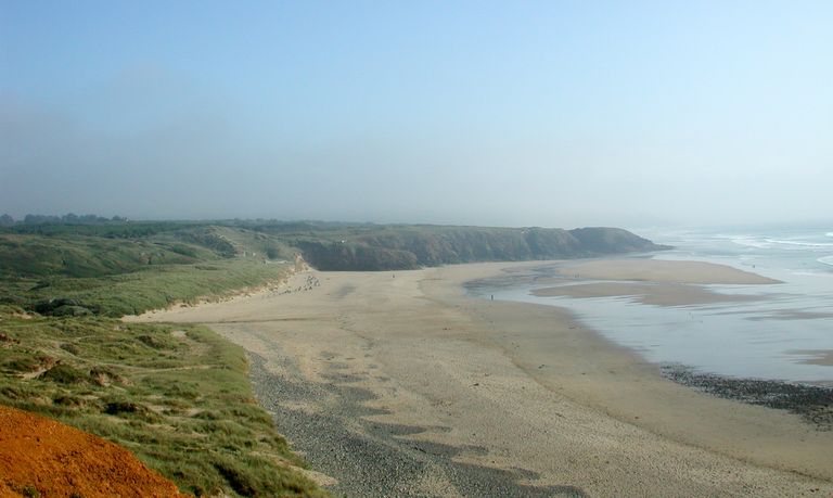 Vue générale de la plage de Lostmarc'h située au nord de La Palue : obstacles de plages (tétraèdres)Immatriculation